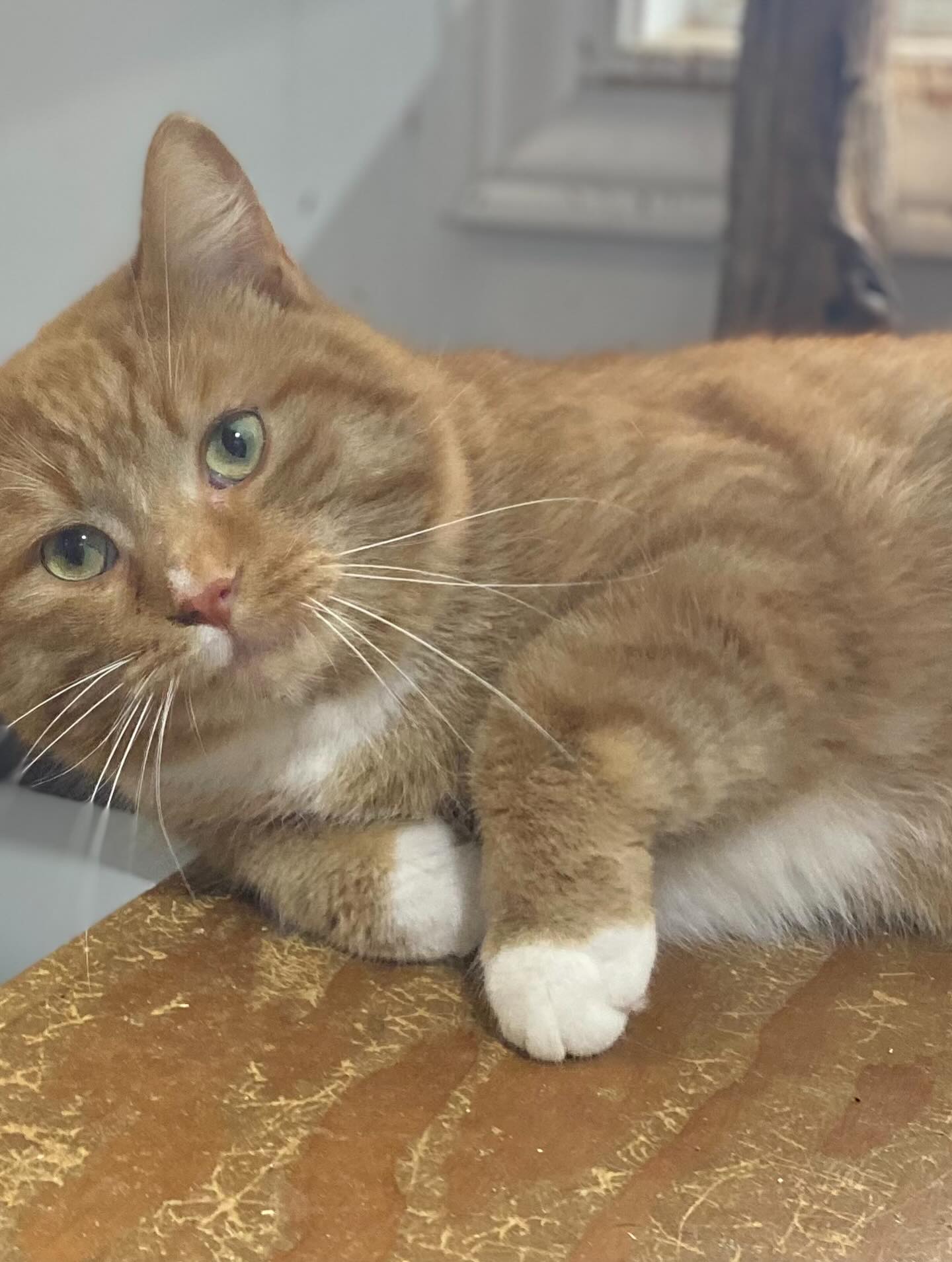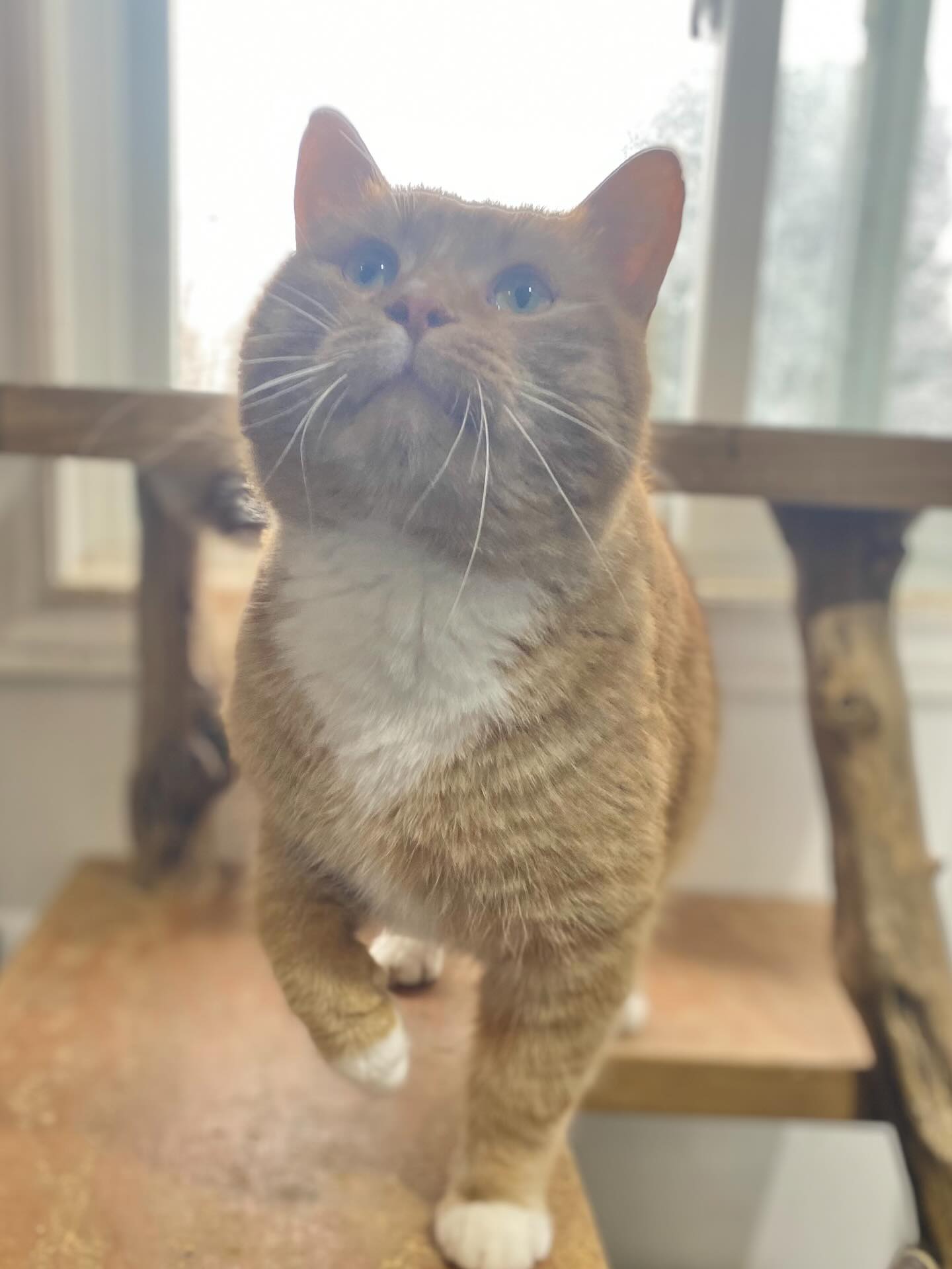 Mac N Cheese is a jumbo boy! Full of everything good! Some other kitty getting love and attention?! Well, so is he! Some other kitty getting a cheesy snack?! Well so is he! He is a very laid-back, chonky boy, who gets along with everyone!! He likes to be in the know, and watching over everything that is happening! Mac N Cheese is about 2.5 years old, and ready to share his cheddary goodness with his forever home!