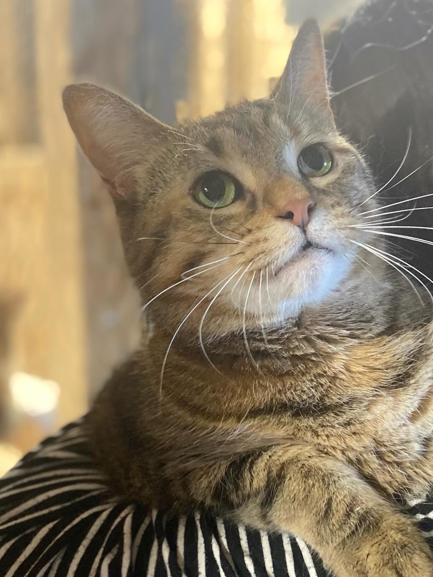 Likes: Hoomans, treats, cuddles, laps, shoulder skritches!